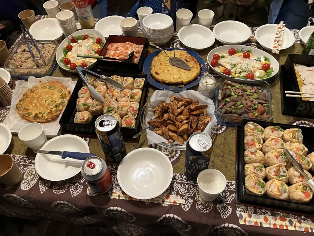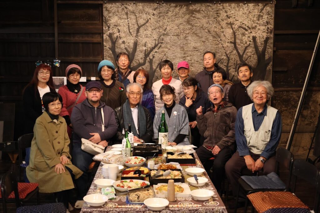 そうしてその後、かぐやの皆さんが持ち寄ってくださったごちそうとお酒を囲んでの時間は  これまた皆さんの想いが次々と 述べられたとても温かな時間でした。           話し、創り、歌い・・見えないものを諦めない同じ思いの人たちが願いながら目指すもの・・いのちや平和への想いがしっかりと繋ぎ合えていた場所でした。